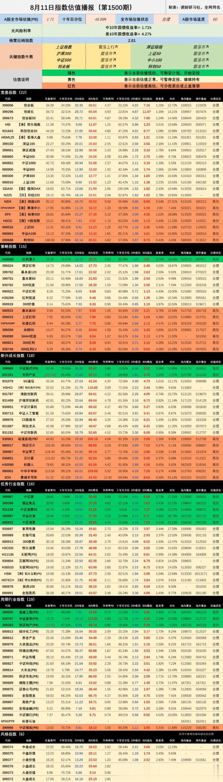 1、8月11日指数估值播报(1500期)